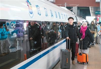 On January 4, the first “Harbin Ice and Snow World” themed high-speed train departed from Harbinxi Railway Station in Heilongjiang, heading to its final destination in Wuhan, Hubei. The train features elements related to the Ice and Snow World both inside and outside, serving as a moving showcase that helps boost the integration and growth of the ice and snow economy.
