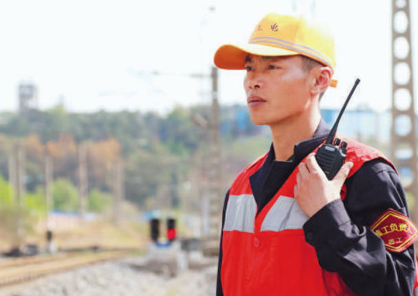 陈月忠在成昆铁路西昌站内盯控现场作业。彭明军 摄