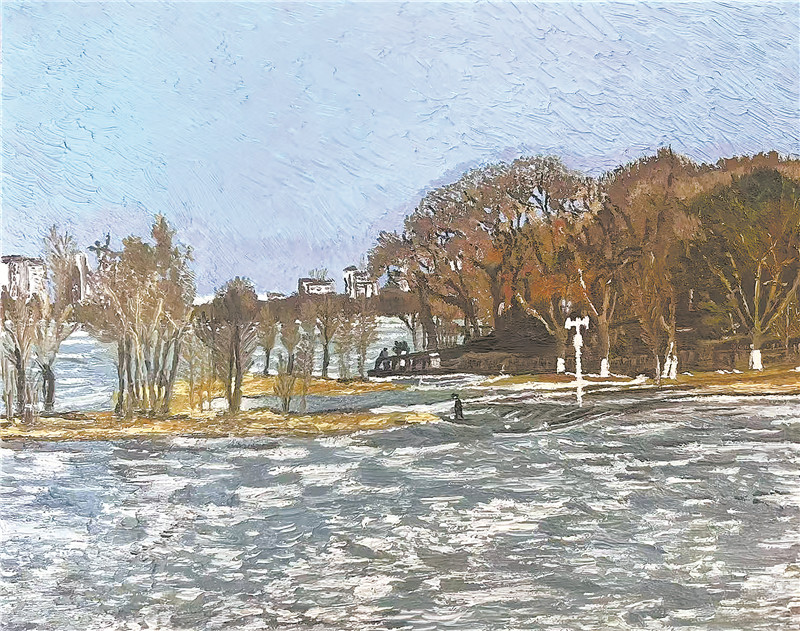 梁晨油画作品:冬林映雪