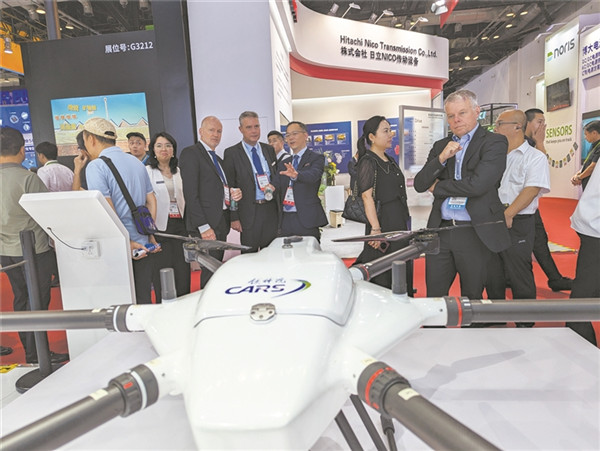 中国铁道科学研究院集团有限公司自主研发的铁路长续航多旋翼无人机吸引众人目光。本报记者 唐克军 摄