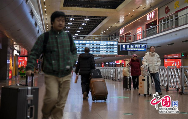 北京西站候车大厅内乘客人来人往。中国网记者 马旷/摄