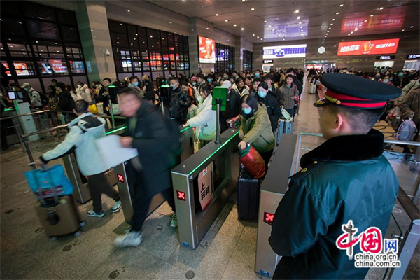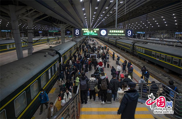 乘坐K4159次列车的乘客检票进站。中国网记者 马旷/摄