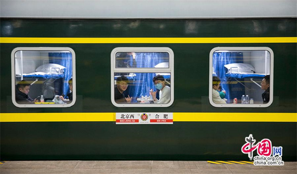 由北京西开往合肥的K4159次列车。中国网记者 马旷/摄