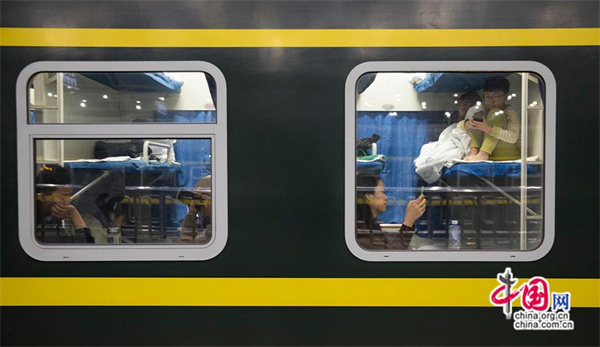 登上K4159次列车的旅客。中国网记者 马旷/摄